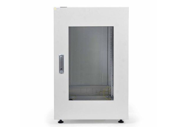 - Abnehmbare Paneele, die an Scharnieren aufgehängt und mit einem Schloss gesichert sind, bieten mühelosen Zugriff auf die aktiven Geräte im Schrank. Darüber hinaus ist der Zugang zu den Geräten von allen vier Seiten möglich, um den Komfort zu erhöhen.